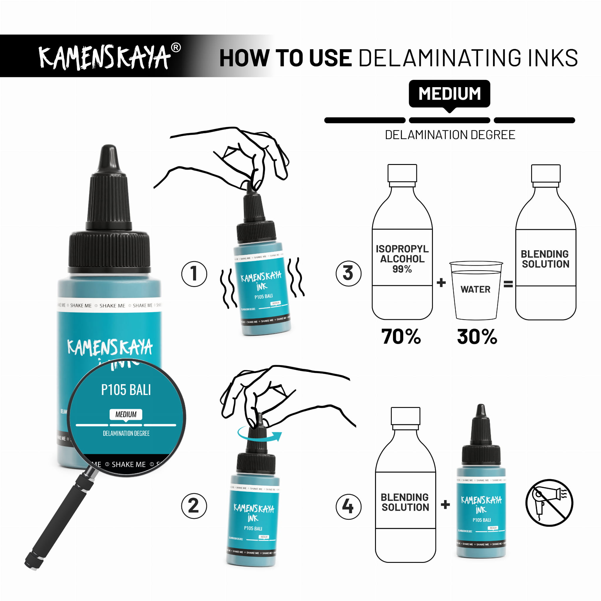 Zainspiruj się możliwościami, jakie oferują atramenty rozwarstwiające KAMENSKAYA, i eksperymentuj, łącząc je z innymi liniami atramentów alkoholowych marki.